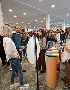 Mit unserer Info-Theke, einem entsprechenden RollUp und unserem neuen, bei der Offerta in der Vorwoche sehr gut angenommenen Wissensrad, waren wir nicht zu übersehen und erweckten entsprechende Neugier.